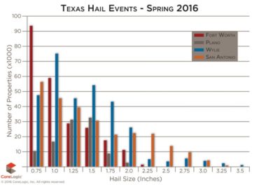 Home Breadcrumb caret News Breadcrumb caret Claims 2016 hail season one of the most severe in Texas history, with nearly US$700 million in estimated losses: CoreLogic The 2016 hail season in Texas is already one of the most severe in the state’s history, with year-to-date results reaching the nine-year average for hail storm damage in the United States, according to CoreLogic, Inc., a global property information, analytics and data-enabled services provider. CoreLogic said that estimated losses in Fort Worth, Plano, Wylie […] By Canadian Underwriter, | July 12, 2016 | Last updated on October 30, 2024 3 min read Plus Icon Image | The 2016 hail season in Texas is already one of the most severe in the state’s history, with year-to-date results reaching the nine-year average for hail storm damage in the United States, according to CoreLogic, Inc., a global property information, analytics and data-enabled services provider. CoreLogic said that estimated losses in Fort Worth, Plano, Wylie and San Antonio totalled US$689.6 million. The San Antonio hail event on April 12 affected 263,440 properties and resulted in losses of US$334.5 million, while the Wylie hail event on April 11 affected 310,088 properties, resulting in losses of US$246.8 million. The Fort Worth hail event on March 17 and the Plano hail event were smaller in scale, with the former affecting 236,452 properties, with an estimated loss of US$72.5 million and the latter, on March 23, affecting 102,674 properties, with an estimated loss of US$35.8 million. Regarding the San Antonio event, background information from CoreLogic showed that the majority of homes (21.36%) were impacted by hail of .75 inches, leading to an estimated US$10.8 million in residential losses. Hail over three inches in size impacted 4,569 homes, with combined residential losses reaching upwards of US$36.6 million. “The timing could not have been worse for the greater San Antonio metro, and the storm proved to be a menace to those in its path over the course of the next hour,” the information stated. “The supercell struck first in the Helotes community, where it dumped hail larger than baseballs, then continued slowly across the northern half of San Antonio, damaging property at the University of Texas at San Antonio, the North Star Mall, and auto dealerships near the San Antonio airport along the way.” It then continued eastward across Alamo Heights and Fort Sam Houston, consistently pounding communities with hail ranging in size from golf balls to grapefruits. “This highly destructive storm came just a day after the devastating hail event in north Texas, and less than a month from two other, similarly impactful events in the Dallas-Fort Worth metroplex.” Related: Third Texas hail storm in less than a month could push state’s year-to-date damage beyond nine-year average for U.S.: A.M. Best The day before the San Antonio event, on April 12, a lone supercell thunderstorm erupted near the north-central Texas town of Scotland, before entering the city of Denton, where hail up to four inches in diameter was reported. The information from CoreLogic said that 17.31% of homes were impacted by hail of 1.5 inches, leading to an estimated US$18.5 million in residential losses. Hail over three inches affected 7,188 homes, with combined residential losses reaching upwards of US$57.5 million. “Cities including Frisco, Plano and Wylie were especially hard hit,” CoreLogic reported. “Here, shredded siding, shattered windows, punctured roofs were the norm after baseball to grapefruit-sized hail pummelled the area, leaving as many as 80% of homes damaged.This was the third high-impact hail event to occur in the Dallas-Fort Worth metroplex in less than a month (March 17, Fort Worth, and March 23, Plano/Sachse), virtually ensuring that the spring of 2016 will be especially memorable for north Texas property owners, as well as the insurance and building industry.” More information on the Texas hail storms is available at https://corelogic.maps.arcgis.com/apps/MapSeries/index.html?appid=d7320240a7cd4a73b91be7a0de82aba3. Canadian Underwriter Print Group 8 LinkedIn LI X (Twitter) logo Facebook Print Group 8
