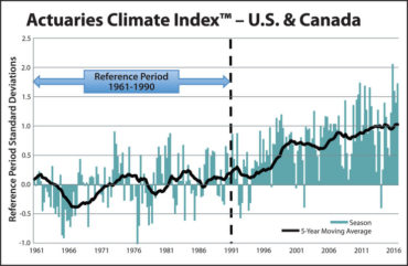 Home Breadcrumb caret News Breadcrumb caret Claims Most recent Canadian, U.S. actuarial index values reflect continued high frequencies of extreme weather events Organizations representing the actuarial profession in Canada and the United States have reported an Actuaries Climate Index (ACI) value for the summer of 2016 of 1.72, the third-highest seasonal level recorded. On Tuesday, the four organizations representing actuaries in the two countries – the Canadian Institute of Actuaries, the Society of Actuaries, the American Academy […] By Canadian Underwriter, | March 7, 2017 | Last updated on October 30, 2024 2 min read Plus Icon Image | Organizations representing the actuarial profession in Canada and the United States have reported an Actuaries Climate Index (ACI) value for the summer of 2016 of 1.72, the third-highest seasonal level recorded. On Tuesday, the four organizations representing actuaries in the two countries – the Canadian Institute of Actuaries, the Society of Actuaries, the American Academy of Actuaries and the Casualty Actuarial Society – updated the ACI, an objective, quarterly measure of changes in extreme weather frequency and sea level. The ACI is based on an analysis of quarterly seasonal data for six different index components – high temperatures, low temperatures, heavy rainfall, drought (consecutive dry days), high wind and sea level – collected from 1961 to summer 2016, compared to the 30-year reference period of 1961 to 1990. The current five-year moving average for the index is 1.03, the American Academy of Actuaries reported in a press release. “We have now seen three of the last four seasons having an Actuaries Climate Index value over 1.50, compared to the 30-year reference period, which had no index values above 1.00,” reported Doug Collins, chair of the Climate Change Committee, which developed the index. “The spring and summer 2016 data reflect a continued pattern of increased frequencies of high temperatures and precipitation, and of lower-temperature extremes, compared to the reference period,” he said, adding that data was collected from “neutral, scientific sources” and actuaries have developed these evidence-based results on extreme weather events. The current highest five-year average values by region are in the Northwest Pacific (British Columbia and Yukon), Northeast Atlantic (New Brunswick, Newfoundland and Labrador, Nova Scotia and Prince Edward Island) and Southern Plains (Kansas, Montana, North Dakota, Nebraska, Oklahoma, South Dakota, Texas and Wyoming). The high values in these regions are driven primarily by high temperatures and rising sea levels, the American Academy of Actuaries reported in the release. The ACI was developed by the Climate Change Committee, which was formed from a partnership of the four sponsoring organizations. The index is designed to provide actuaries, public policymakers and the general public with objective data about changes in the frequency of extreme climate events over recent decades. Updates for values will be posted quarterly on the ACI website as data for each meteorological season becomes available. The organizations are also developing a second index, the Actuaries Climate Risk Index, to measure correlations between changes in the frequency of extreme events as measured by the index and economic losses, mortality and injuries. The ACI was launched on Nov. 30, 2016 as an educational tool to inform actuaries, public policymakers and the general public about climate trends and some of the potential impacts of a changing climate on Canada and the U.S. Canadian Underwriter Print Group 8 LinkedIn LI X (Twitter) logo Facebook Print Group 8
