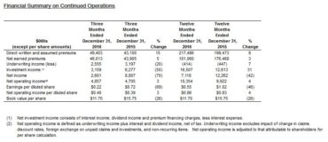 Home Breadcrumb caret News Breadcrumb caret Industry Echelon Financial Holdings Inc. sees lower net income for 2016 full-year, Q4 over prior-year periods It was a mixed bag for Echelon Financial Holdings Inc. (EFH) in the fourth quarter of 2016, with strong commercial lines results and lower personal lines results combining to contribute to a 70% drop in net income to about $2.6 million compared to 2015 Q4. Specifically, net income in 2016 Q4 was approximately $2.6 million […] By Canadian Underwriter, | February 17, 2017 | Last updated on October 30, 2024 4 min read Plus Icon Image stock graphy on screen|| It was a mixed bag for Echelon Financial Holdings Inc. (EFH) in the fourth quarter of 2016, with strong commercial lines results and lower personal lines results combining to contribute to a 70% drop in net income to about $2.6 million compared to 2015 Q4. Specifically, net income in 2016 Q4 was approximately $2.6 million compared to $8.8 million for 2015 Q4, note figures in a statement issued late Thursday by EFH. The company, whose Canadian subsidiary is Echelon Insurance, operates in the property and casualty insurance industry in Canada, primarily focusing on non-standard automobile insurance and other specialty p&c insurance products. There was also a decrease for full-year 2016, although not as severe. Net income for the 12 months ended Dec. 31, 2016 was $7.1 million, down 42% compared to approximately $12.3 million for the same period of 2015. The story for net operating income – underwriting income plus interest and dividend income, net of tax – was more positive for both full-year and fourth quarter 2016. Net operating income was up 3% to about $4.9 million in 2016 Q4 compared to $4.7 million in 2015 Q4. For the full-year period, net operating income was $10.3 million in 2016 compared to $9.9 million in 2015, an increase of 4%. Both direct written and assumed premiums (DWP) and net earned premiums (NEP) were also up for both fourth quarter and full-year compared to the prior-year periods. DWP amounted to $49.4 million in 2016 Q4, up 15% compared to $43.1 million in 2015 Q4, primarily driven by additional new products across Canada; NEP was up 5% to $46.0 million from $43.9 million. For the full-year periods, DWP was 9% higher at about $217.5 million in 2016 – attributable predominantly to new product lines in surety and commercial auto and stronger broker relationships – compared to approximately $199.5 million in 2015. NEP, for its part, was up 3% to about $181.1 million from about $176.5 million, the company notes. With regard to underwriting results, income was down 20% to about $2.6 million in the fourth quarter of 2016 compared to about $3.2 million in the same quarter of 2015. For full-year, EFH posted a 7% improvement, but still a $414,000 loss in 2016 compared to an underwriting loss of $447,000 in 2015. Looking by line, EFH reports personal lines generated an underwriting loss of $3.5 million in 2016 Q4 compared to an underwriting income of $3.3 million in 2015 Q4, “primarily due to weak performance in Ontario auto driven by increased severity in claims.” For commercial lines, underwriting income of $7.9 million in the fourth quarter of 2016 compared to $2.2 million in the same period of 2015, “due to strong performance across Canada,” the release notes. “The company continues to focus on growing the Canadian business through product expansion, investments in technology and strong broker relationships,” it adds. For all of 2016, personal lines generated an underwriting loss of $3.2 million compared to an underwriting income of $3.3 million in 2015. Commercial lines generated an underwriting income of $10.0 million in 2016 compared to $4.9 million in 2015 “due to strong performance of property and liability, warranty and commercial auto products,” the company states. A Canadian combined operating ratio of 90% in the fourth quarter of 2016 compared to 88% in the prior-year quarter, EFH reports. “Our fourth quarter results were mixed,” says EFH CEO Serge Lavoie. “We were very pleased by the exceptional results reported in commercial lines across the country. However, our personal lines performance was negatively impacted by increased claims severity in Ontario auto, in line with market experience,” Lavoie notes. “Most of these claims were reported prior to the introduction of the June 2016 reforms, which we hope will reduce catastrophic claims moving forward. We will continue to monitor our claims closely,” he continues. EFH previously announced it is exiting the European market to focus on growing its Canadian operations. Related: Echelon Financial Holdings Inc. sees lower net income in 2016 Q2, will focus on Canadian operations It was noted in a statement last August that the company has entered into a definitive stock purchase agreement to sell its European insurance operations, “allowing us to allocate our capital to grow the Canadian operations,” Lavoie said at the time. “We are currently awaiting approval for the change of control application submitted to the Danish Financial Services authority for the divestiture of the European operations,” the company statement Thursday adds. Reports Lavoie, “Our expectation is that we will have a decision within the next two or three weeks.” Other company results include the following: investment income in 2016 Q4 was $3.2 million compared to $6.3 million in 2015 Q4, primarily as a result of lower preferred shares mark-to-market gains compared to the prior-year period; the fair value of the investment portfolio, including finance receivables, was $410 million in 2016 Q4; total pre-tax loss on invested assets of $0.6 million in 2016 Q4 compared to a pre-tax gain of $6.2 million in 2015 Q4, largely due to higher government bond yields and lower gains on Preferred Shares compared to prior-year quarter; net income attributable to shareholders on continued operations was $2.6 million