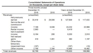 Home Breadcrumb caret News Breadcrumb caret Industry Kingsway Financial Services Inc. posts net loss for both full-year, fourth quarter 2016 Several significant events during the fourth quarter of 2016 contributed to Kingsway Financial Services Inc. (KFS) reporting a net loss for both the quarter and the full year. For all of 2016, the company posted a loss of about US$9.4 million compared to net income of about US$1.3 million in 2015, notes a KFS statement […] By Canadian Underwriter, | March 8, 2017 | Last updated on October 30, 2024 3 min read Plus Icon Image Stock market price display at outdoor.|A black sports car turns in to a corner. Autumn leaves are on the road and in the background blur.| Several significant events during the fourth quarter of 2016 contributed to Kingsway Financial Services Inc. (KFS) reporting a net loss for both the quarter and the full year. For all of 2016, the company posted a loss of about US$9.4 million compared to net income of about US$1.3 million in 2015, notes a KFS statement issued Wednesday. For the quarter ended Dec. 31, 2016, the net loss amounted to US$8.6 million compared to a net loss of US$2.1 million for the fourth quarter of 2015. Kingsway Financial Services – a holding company functioning as a merchant bank that owns or controls stakes in several insurance industry assets – cites the following significant events in 2016 Q4: the insurance underwriting segment incurred net unfavourable development of US$7.6 million related to accident years 2015 and prior; the increase in the fair value of KFS’s trust preferred debt resulted in a US$4.8 million loss; net investment income of US$6.2 million included US$4.7 million of income related to the company’s investment in 1347 Investors LLC; and completion of the fair value analysis related to KFS’s acquisition of CMC resulted in US$0.3 million of net income. On the operating side, KFS saw an operating loss of about US$6.8 million for 2016 compared to an operating loss of about US$1.5 million for 2015. For the fourth quarter of 2016, the operating loss amounted to US$2.6 million compared to an operating loss of approximately US$0.9 for the same quarter of 2015. “Operating loss reflects the company’s core operating activities, including its reportable segments, passive investment portfolio, merchant banking activities and corporate operating expenses,” the statement notes. Kingsway Financial Services reports the operating loss for the Insurance Underwriting segment was US$8.0 million for 2016 Q4 compared to US$0.8 million for 2015 Q4. With regard to operating income, this amounted to about US$0.9 million for the Insurance Services segment in the fourth quarter of 2016 compared to an operating loss of about US$0.2 million for the same quarter of 2015. In addition, net investment income of US$6.2 million was reported for 2016 Q4 compared to US$0.3 million for the prior-year quarter, and net realized gains of US$0.4 million were reported for 2016 Q4 compared to US$1.1 million for 2015 Q4. And with regard to net premiums earned (NPE), KFS reports that these amounted to about US$127.6 million in 2016 compared to US$117.4 million in 2015. For the quarter ending Dec. 31, 2016, NPE was US$33.4 million compared to US$29.0 million for the same quarter of 2015. A number of initiatives intended to improve the operating performance of KFS’s insurance operations – particularly with respect to strengthening the management of the claims department – have been undertaken over the course of 2016, says Larry Swets, Jr., company president and CEO. “We have been aggressively increasing premium rates throughout the second half of 2016 and into 2017,” Swets says. KFS is also “actively pursuing initiatives related to increasing policy fee income, reducing bad debt expense, outsourcing the first notice of loss function, outsourcing much of the salvage and subrogation function and entering into an agreement with an outside vendor to migrate to a new policy administration and claim-handling operating platform sometime in 2017,” he continues. “While we are not happy to have to report adverse development on old accident years,” Swets points out, he notes the company is optimistic about the direction insurance operations are taking “and the potential positive impact to our segment operating income from the implementation of these initiatives.” Other results for Kingsway Financial Services include the following: net loss attributable to common shareholders of $8.8 million in 2016 Q4; since the combination between 1347 Capital Corp. and Limbach Holdings LLC closed in July, KFS has recorded an US$8.8 million increase in its shareholders’ equity as a result of this investment; book value decreased to US$2.19 per share at Dec. 31, 2016 from US$2.22 per share at Dec. 31, 2015, and increased from US$2.15 per share at Sept. 30, 2016. Related: Kingsway reports net income of US$1.4 million in Q3 2016, compared to net loss of US$0.9 million in Q3 2015 Canadian Underwriter Print Group 8 LinkedIn LI X (Twitter) logo Facebook Print Group 8