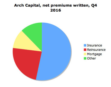 Home Breadcrumb caret News Breadcrumb caret Industry Loss ratio up 1.4 points for Arch Capital Arch Capital Group Ltd. reported Monday a combined ratio of 99.4% in insurance during the last three months of 2016 due in part to Hurricane Matthew, while net favorable development, due in part to better than expected claims emergence in short-tail business, reduced its loss ratio in reinsurance during the last three months of 2016. […] By Canadian Underwriter, | February 14, 2017 | Last updated on October 30, 2024 3 min read Plus Icon Image | Arch Capital Group Ltd. reported Monday a combined ratio of 99.4% in insurance during the last three months of 2016 due in part to Hurricane Matthew, while net favorable development, due in part to better than expected claims emergence in short-tail business, reduced its loss ratio in reinsurance during the last three months of 2016. For the full year, Hamilton, Bermuda-based Arch Capital reported a combined ratio of 89.9% in 2016, up 0.4 points from 89.5% in 2015. The loss ratio deteriorated 1.4 points, from 54.9% in 2015 to 56.3% in 2016. Arch writes insurance and reinsurance worldwide, as well as mortgage insurance in the U.S. Those are its three underwriting segments. Its “other” segment includes Watford Holdings Ltd. and its subsidiary Watford Re Ltd., a multi-line Bermuda reinsurance company launched in March 2014. Arch acts as Watford Re’s reinsurance manager. Arch Insurance opened a branch office in Canada in 2005 and then in January 2013, Arch Insurance Canada Ltd. commenced operations and replaced the branch office in Toronto. On Dec. 31, Arch completed the acquisition of United Guaranty Corporation. For the fourth quarter, Arch Capital reported net premiums written of $872.3 million in 2016, up 4.5% from $835 million in Q4 2015. All figures are in United States dollars. During the most recent quarter, Arch Capital reported net premiums written of $465.8 million in insurance, $206.1 million in reinsurance and $92.9 million in mortgage, for a total of $764.9 million in net premiums written in “core” operations. Net premiums written in “other” were $107.4 million for Q4 2016. The loss ratio was 57.2% in the latest quarter, up 3.6 points from 53.6% in Q4 2015. The combined ratio increased 1.8 points, from 88.9% in Q4 2015 to 90.7% in the three months ending Dec. 31, 2016. In its insurance segment, Arch Capital reported a loss ratio of 67.7% in the most recent quarter, up 5.5 points from 62.2% in Q4 2015. “The 2016 fourth quarter loss ratio reflected 4.6 points of current year catastrophic activity, primarily related to Hurricane Matthew, compared to 0.4 points in the 2015 fourth quarter,” Arch said in a filing with the U.S. Securities and Exchange Commission. “Estimated net favorable development in prior year loss reserves, before related adjustments, reduced the loss ratio by 1.6 points in the 2016 fourth quarter, compared to 2.0 points in the 2015 fourth quarter. The estimated net favorable development in the 2016 fourth quarter primarily resulted from better than expected claims emergence in medium-tail lines across most accident years. The balance of the change in the 2016 fourth quarter loss ratio resulted, in part, from changes in the mix of business.” Arch’s insurance coverages include professional liability, construction, excess and surplus casualty, marine, aviation and energy, among others. The combined ratio in insurance was 99.4% in Q4 2016, up 4.8 points from 94.6% in Q4 2015. In reinsurance, Arch capital reported a combined ratio of 78.6% in the latest quarter, up 2.4 points from 76.2% in Q4 2015. The loss ratio in reinsurance deteriorated 6.2 points, from 38.2% in Q4 2015 to 44.5% in the three months ending Dec. 31, 2016. “The 2016 fourth quarter loss ratio included 4.5 points of current year catastrophic activity (before the impact of reinstatement premiums), primarily related to Hurricane Matthew, compared to 5.8 points of catastrophic activity in the 2015 fourth quarter,” Arch Capital said of its Q4 reinsurance results. “Estimated net favorable development in prior year loss reserves, before related adjustments, reduced the loss ratio by 16.7 points in the 2016 fourth quarter, compared to 22.5 points in the 2015 fourth quarter. The estimated net favorable development in the 2016 fourth quarter primarily resulted from better than expected claims emergence in short-tail business from most underwriting years and in longer-tail business from 2013 and prior underwriting years.” Arch Capital reported net income available to common shareholders of $665 million on total revenue of $4.46 billion in 2016, compared to net income available to common shareholders of $516 million on total revenue of $3.94 billion in 2015. During the latest quarter, Arch Capital reported net income available to common shareholders of $62.4 million on total revenue of $988.2 million, compared to net income of $53.1 million on total revenue of $902 million during the three months ending Dec. 31, 2015. Underwriting income dropped 3.4%, from $113.1 million in Q4 2016 to $109.2 million in the latest quarter. For the full year, underwriting income rose 5.9%, from 429.5 million in 2015 to $455 million last year. Canadian Underwriter Print Group 8 LinkedIn LI X (Twitter) logo Facebook Print Group 8